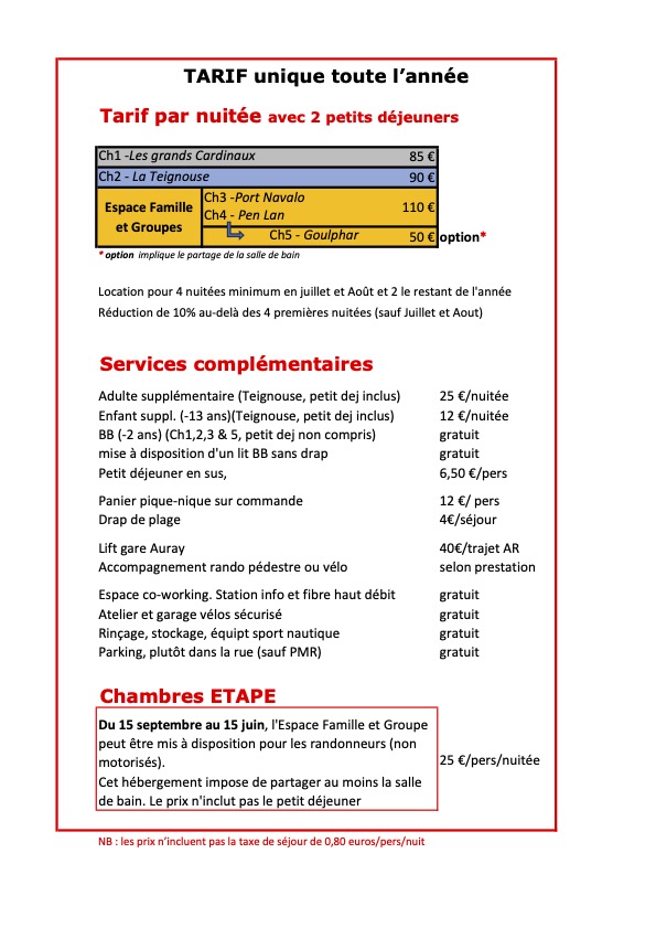Ce tarif inclut :